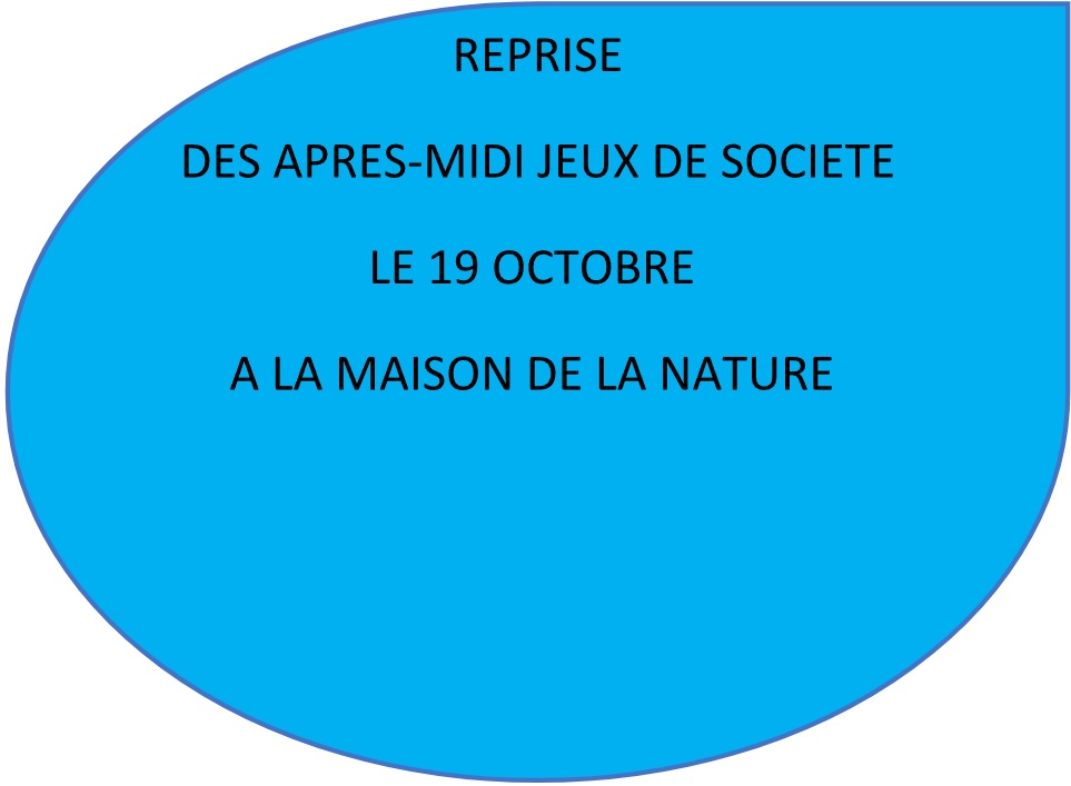- Les après-midi jeux de société à partir du 19 octobre les dimanches à 14h00 à la Maison de la Nature.